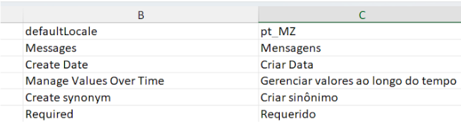 GeoPrism Registry automatically creates the header of the column under which translations need to be added (e.g., pt_MZ). Do not change this header.